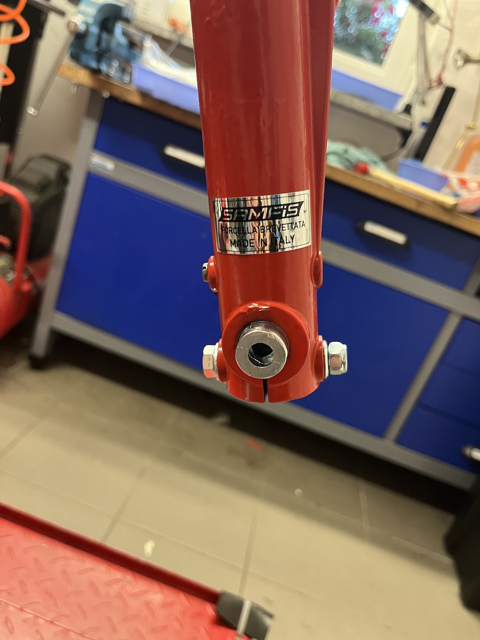 Hebel, Gasgriff, Lichtschalter und Griffe montiert, war ein bisschen schwierig da auch der Lenker gepulvert wurde, mit Seife und vorsichtigem Aufhebeln der Griffe ließ es sich machen ohne den Lenker zu vermacken. Hebel und Gasgriff sind top in Schuß gewesen, lediglich gesäubert, haben eine schöne Patina. Einen originalen NOS Lichtschalter hatte ich letztes Jahr glücklicherweise in Novegro gefunden, mal sehen ob der Rennschnecken Kabelbaum plug and play passen wird. Auch hier steht drücken an…