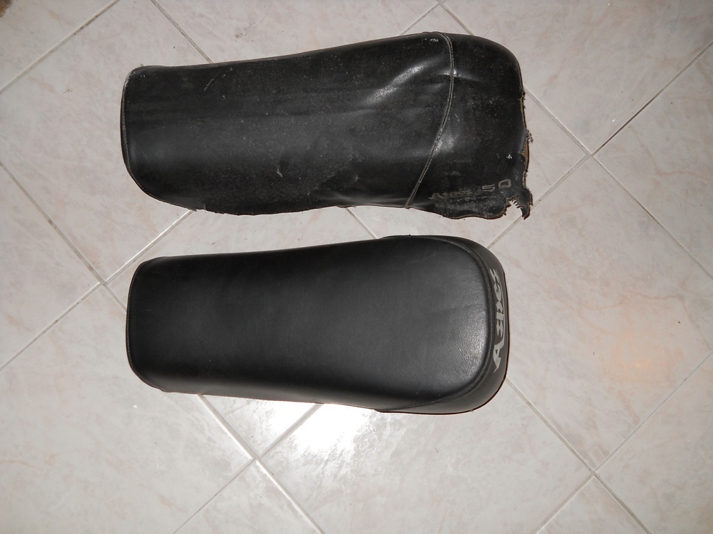 Die beiden Einmannsitzbänke sind eine gebrauchte von einem 78er Modell und eine neue von einem 76/77er Modell (solche Bänke gab es noch vor 2 Jahren für 35 Euro in ebay.it)