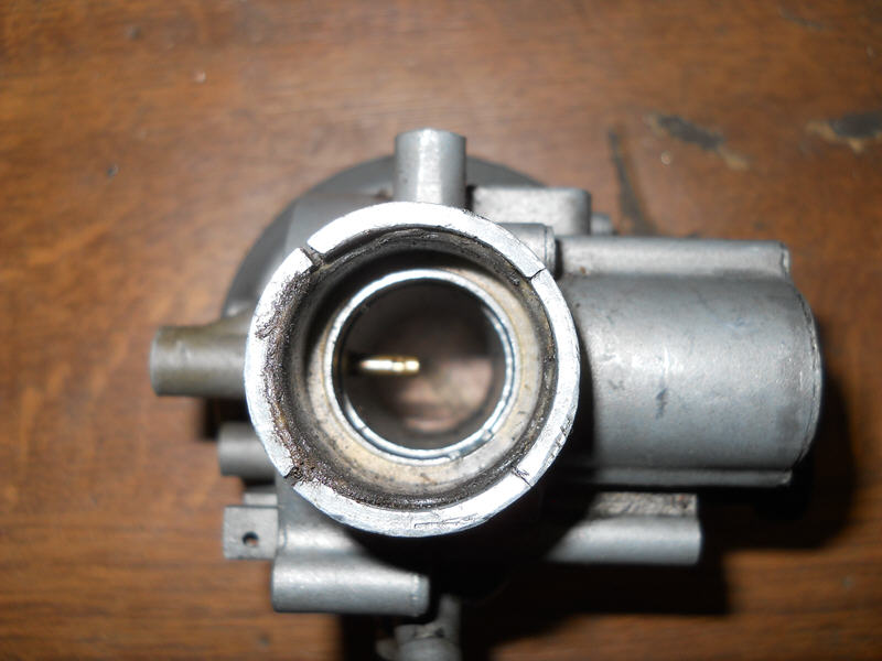 So sieht das nach dem Ausdrehen (passend zur Buchse) aus, man kann schön sehen wo die Vergaserbacken sich reingebogen hatten und wo nicht.