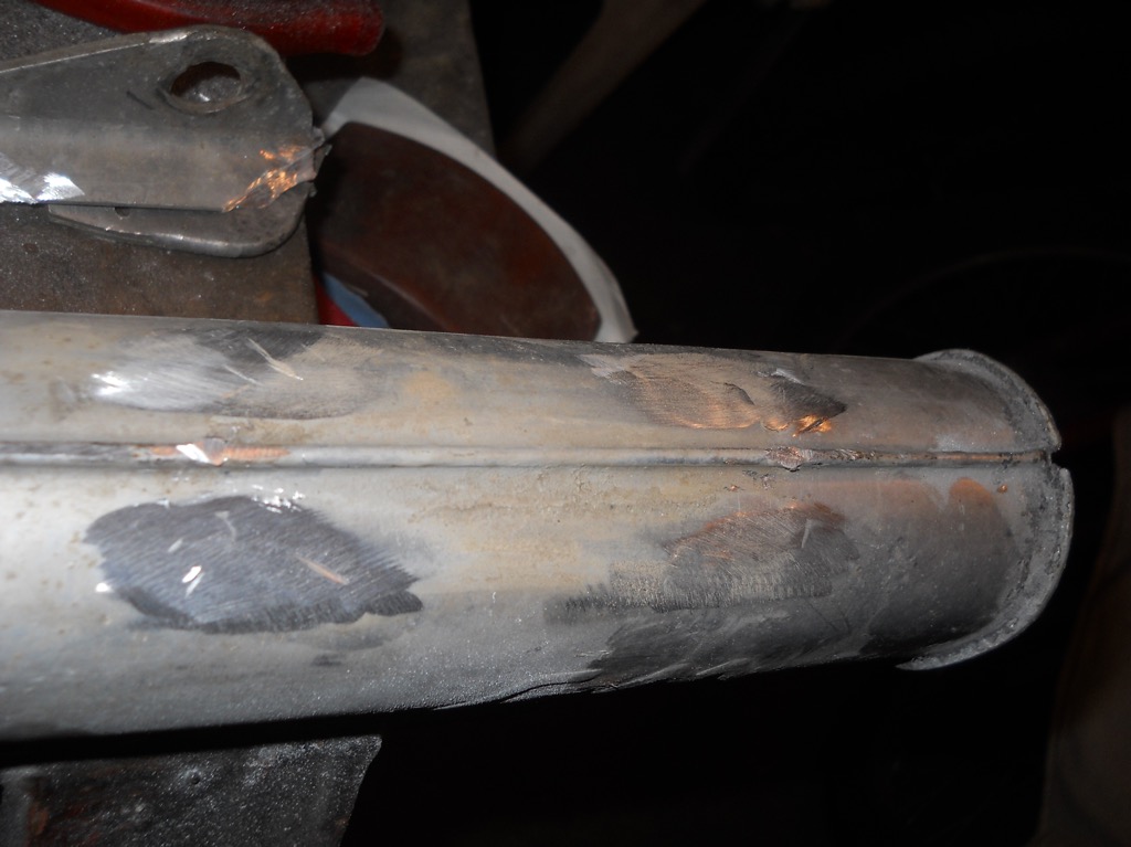 Dann die Schweißnähte so gut es ging mit der Fächerscheibe verputzt und mit Schleifpapier alles egalisiert.
