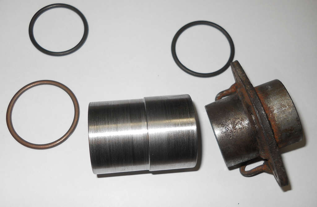 Also erst mal ST37 Poppelstahl genommen, da nachher ja noch geschweisst werden muss. Hier sieht man den Rohling und das fertige Teil. Hatte leider kein passendes Rohrmaterial, somit musste alles aus dem Vollen gedreht werden.