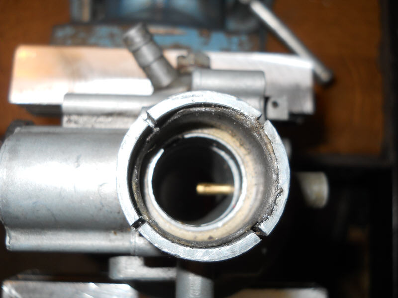 So sieht das nach dem Ausdrehen (passend zur Buchse) aus, man kann schön sehen wo die Vergaserbacken sich reingebogen hatten und wo nicht.