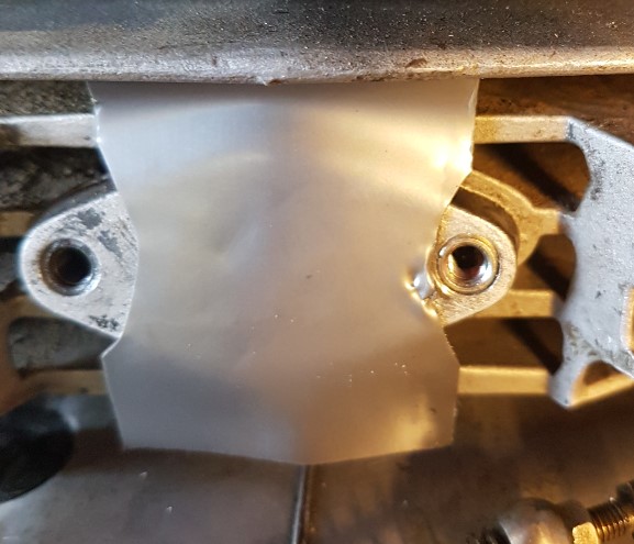 Am Ende habe ich weder Helicoil, noch Würth verwendet, sondern mich für selbstschneidende Ensat Gewindeeinsätze entschieden. Die Ganze Prozedur schien mir dadurch etwas einfacherer und sicherer zu werden. Ich wollte das Ganze auch ohne Ausbau oder Demontage des Motors erledigen. Zuerst dachte ich an einen 90° Bohrkopf, hab aber dann schnell das Heck und den Luftfilter entfernt.