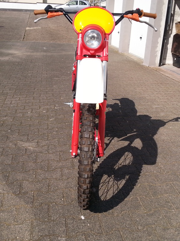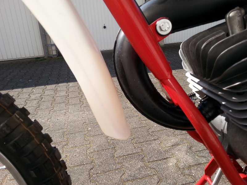 Der rote war ja dran (siehe Seite 1). Ist viel zu groß für die Gabel und hat mir von Anfang an nicht gefallen. Den zweiten von oben, hatte ich als Alternative für den obersten aus Novegro mitgebracht. Sieht aber ein bisschen wie Kindermoped aus. Im Februar habe ich zufällig den obersten zwischen weiterem Plastikschrott in Novegro entdeckt. Den hatte ich schon lange im www gesucht, weil der auch von Beta verbaut wurde (siehe Prospektbild Seite 1), konnte ihn aber nirgends finden.
