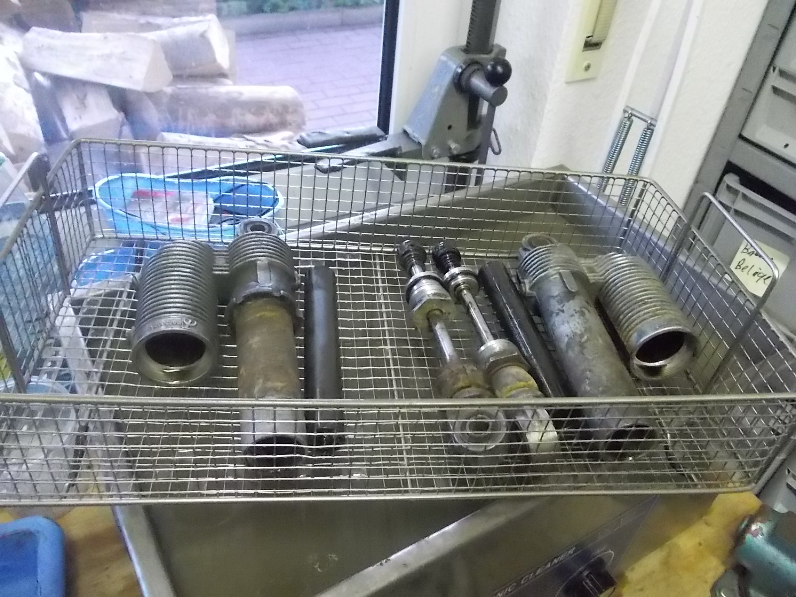 Da die oberen Buchsen/Becher für die Federn und die Halteelemente total deformiert sind, werde ich die einfach aus den Vollen schnitzen. Gleich mal 60mm Rohmaterial abgeschnitten und Feierabend gemacht.