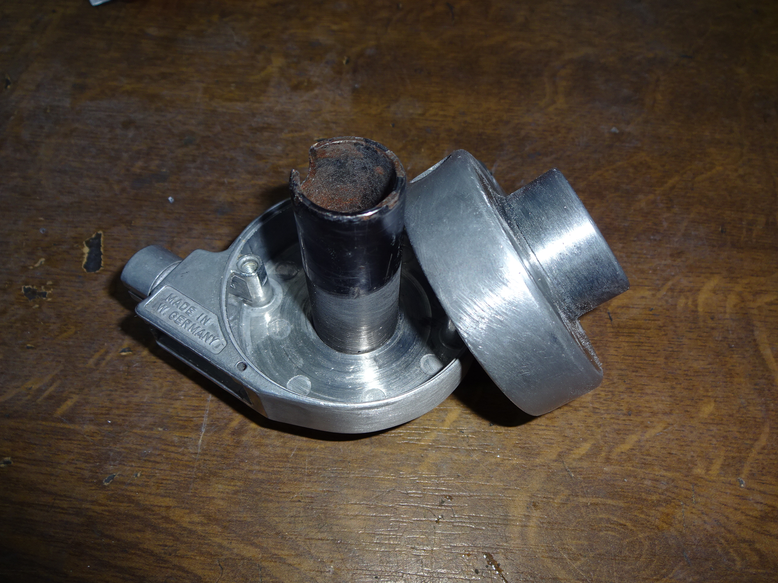 Beim Aris Teil fehlten Rändelschraube und Feder (nehme ich von meinem),bei HaJo seinem war dort statt nem Gewinde, ein Sackloch mit Stopfen drin.