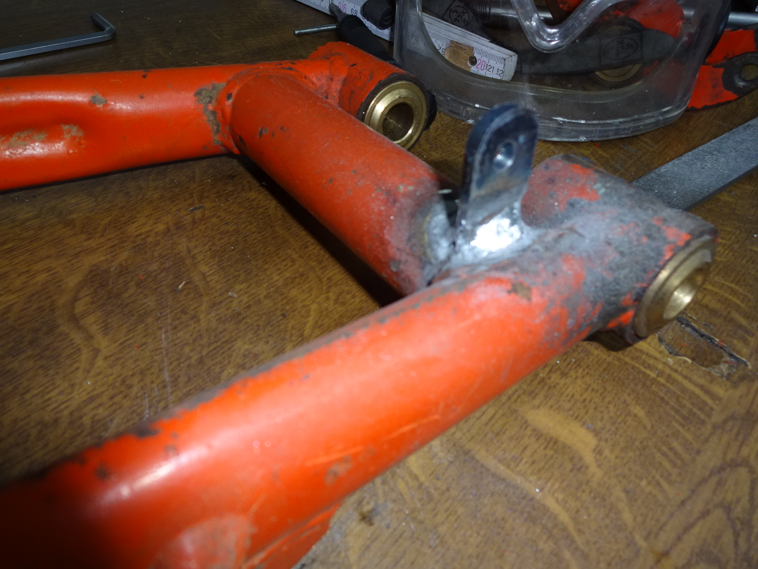 Während also die Gehäuse so im Ofen brutzeln, hab ich mir mal den Rahmen vorgenommen.
