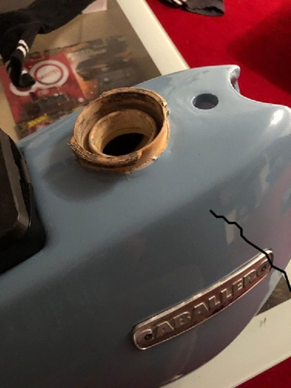 Immer wieder nass geschliffen und neu grundiert, solange bis eine lackierfähige Oberfläche entstanden ist. Dann normal mit Haftgrund, 2-K Lack und Klarlack lackiert. Das ganze ist jetzt ein 3/4 Jahr her, und der Tank hat, bis auf eine Stelle wo wir "gepfuscht" haben, weder Ablösungen noch Abhebungen.