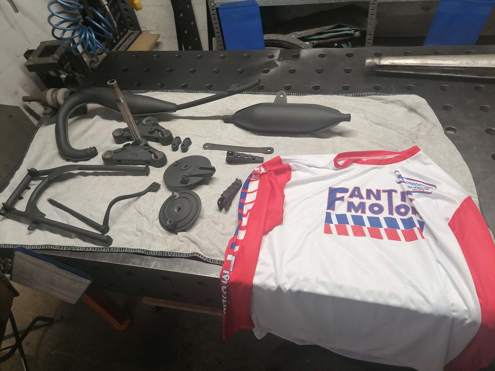 Hi Felix Die Seitedeckel sind Nachbau, hatte ich vor einigen Jahren in reggio aufm teilmarkt gekauft, machen wirklich einen guten Eindruck... Früher machten die Italiener immer gfk welches nach 1x schmeißen nicht mehr ganz die ursprüngliche Form hat..... Das Plastik welches du auf dem letzten Bild siehst hatte ich vom Horst Renner das war aus sehr gut. Die schwarzen Teile hatte ich selbst gestrahlt und dann pulvern lassen bzw. Lackiert : Empfehlung technolit schwarz und 2k klarlack matt. Sieht mega aus ....und die Qualität passt... Wir haben einen guten pulverer in der nähe der noch für normales Geld arbeitet.. Gruß Bernhard |