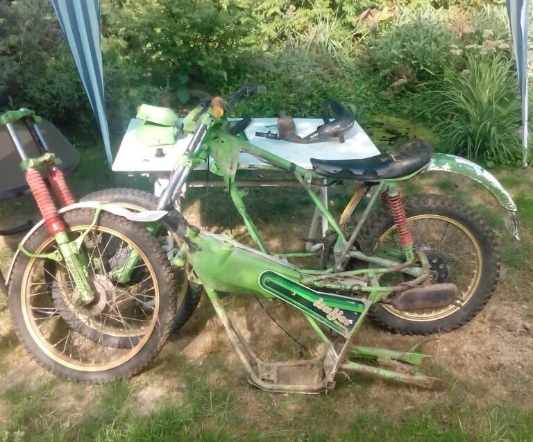 Also das Ganze kurz vor Urlaub noch schnell geholt. Wieder mal 350 km. Aber die Teile alle für nen Fuffi bekommen und nen netten Typ kennen gelernt. Er räumt gerade die Hinterlassenschaften der ehemaligen Motorrradwerkstatt seines Vaters aus einer alten Scheune. Diese konnte ich allerdings nicht besichtigen. Nur seine Halle mit seinen Projekten in die er auch immer die mom. in den Kleinanzeigen angebotenen Teile räumt. Schöne Sachen hat er da stehen. Unter anderem auch ne fast neue Fantic (kenne mich da nicht so aus, roter Platsiktank, Bananenschwinge), bei der seinerzeit wohl nur der Motor geschlachtet wurde. Warum man das bei diesem Moped gemacht hat ist mir ein Rätsel. Die Maschine ist fast in Neuzustand und wohl kaum gelaufen. Laut seiner Aussage hat er noch Einiges in der Scheune und er ist bei mir erstmal unter "Folgen" in den Kleinanzeigen abgespeichert.
