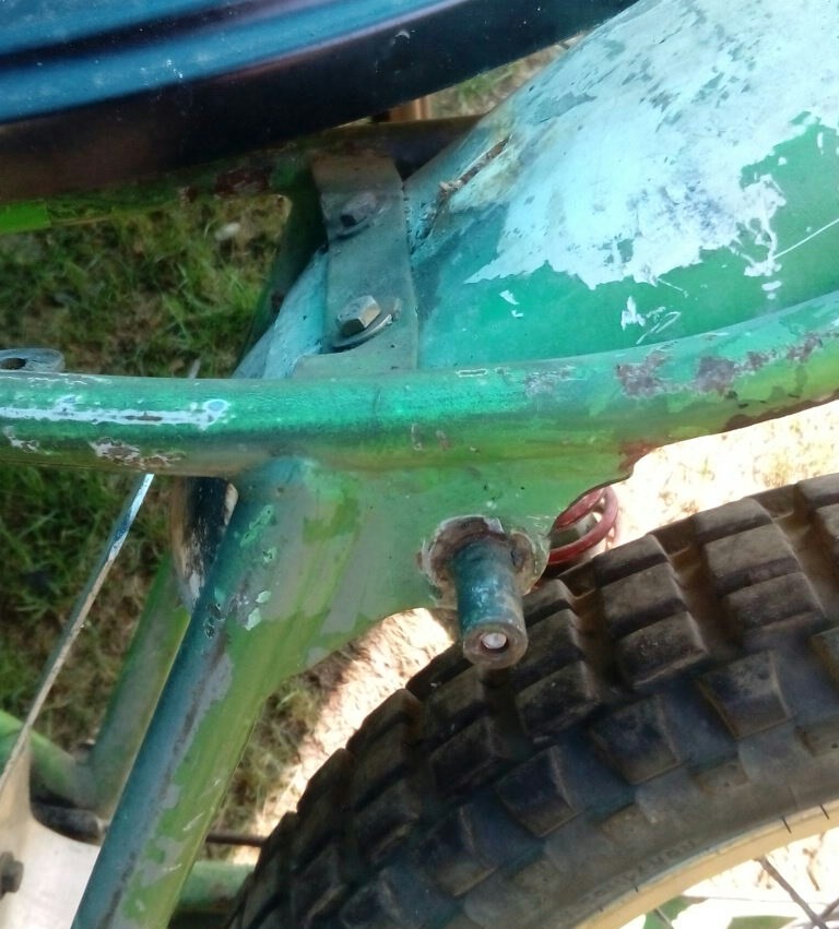 -Haufen 1: Keine vorderen Kotflügelhalter, bei Haufen 2 incl. Koti dabei, aber eine Lasche abgebrochen -> an der Gabel von Haufen 1 hängt noch exakt diese Lasche als Restfragment