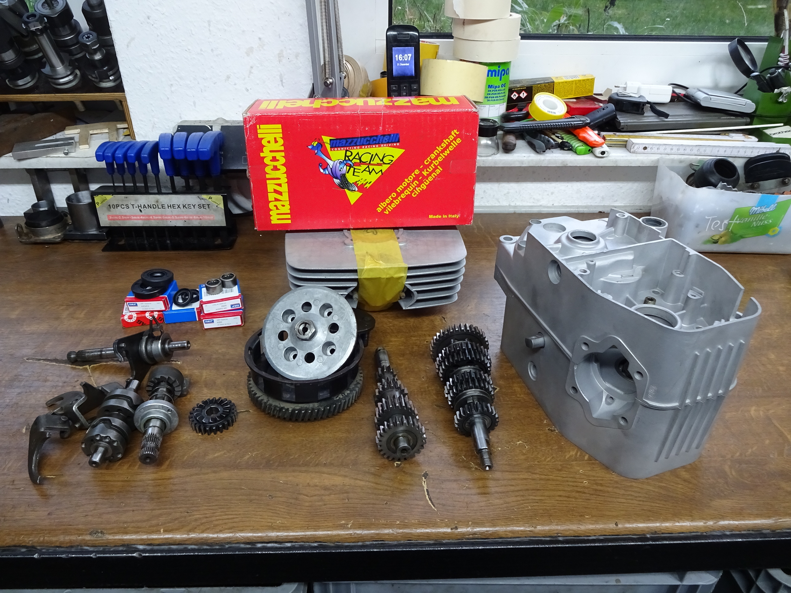 Jetzt noch den Kupplungskorb ebenfalls auf 0,1mm ausdistanziert und die Kupplung zusammen gebaut. Dabei erst mal „nur“ die 10 Taschen/Vierfeder Kupplung verbaut, aber mit verstärkten Federn. Will einfach mal sehen wie die nen 6000er Polini verkraftet, sonst wird halt aufgerüstet