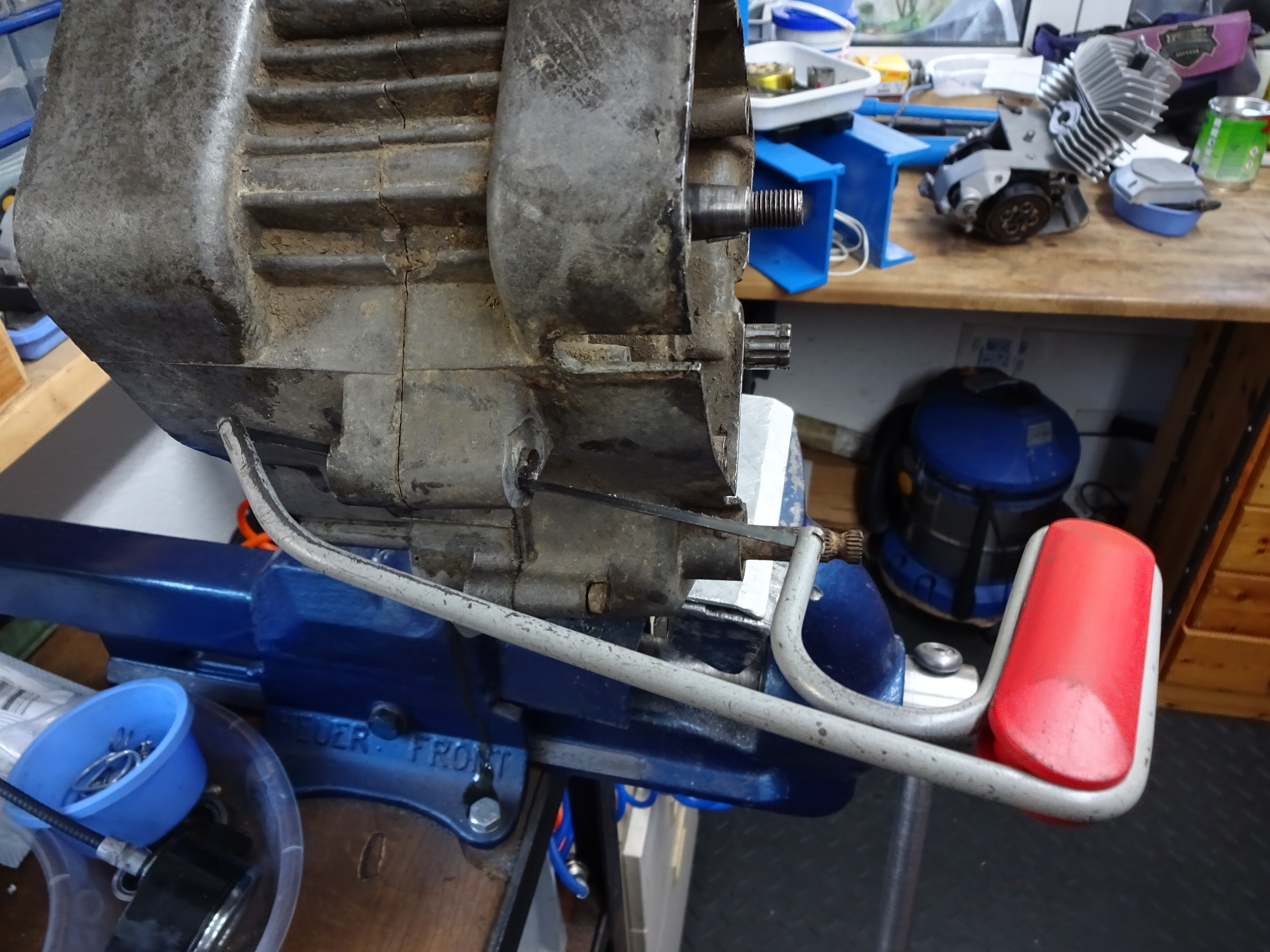Das riesige Primärzahnrad ging mit dem Minarelliabzieher (gefunden in Novegro, 7 Euro