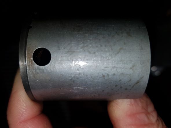 Nun ist mir aufgefallen das auf dem Kolben kein Richtungspfeil ist. Wenn das zusätzliche Loch Richtung Einlaß zeigt, dann wird es durch den Steg weitestgehend verdeckt. Allerdings hat der Zylinder über dem Einlaß eine Kerbe/Vertiefung wo das Loch im Kolben dran vorbei gleitet. Die Stelle im Kolben wo der Ringstoß ist, läuft im Zylinder immer an einem Kanal vorbei, egal wie ich ihn drehe. Ist m.E. nicht so optimal da sich der Ring ja dort aufhängen und brechen kann.