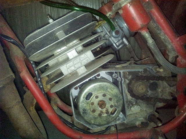 Noch ein Foto aus besseren Zeiten mit Originalmotor (Lange Corto Cosso mit verlängertem Ständer Kettenführung ging so, 16er Vergaser an 14er Ansaugstutzen) Standard war halt langweilig...