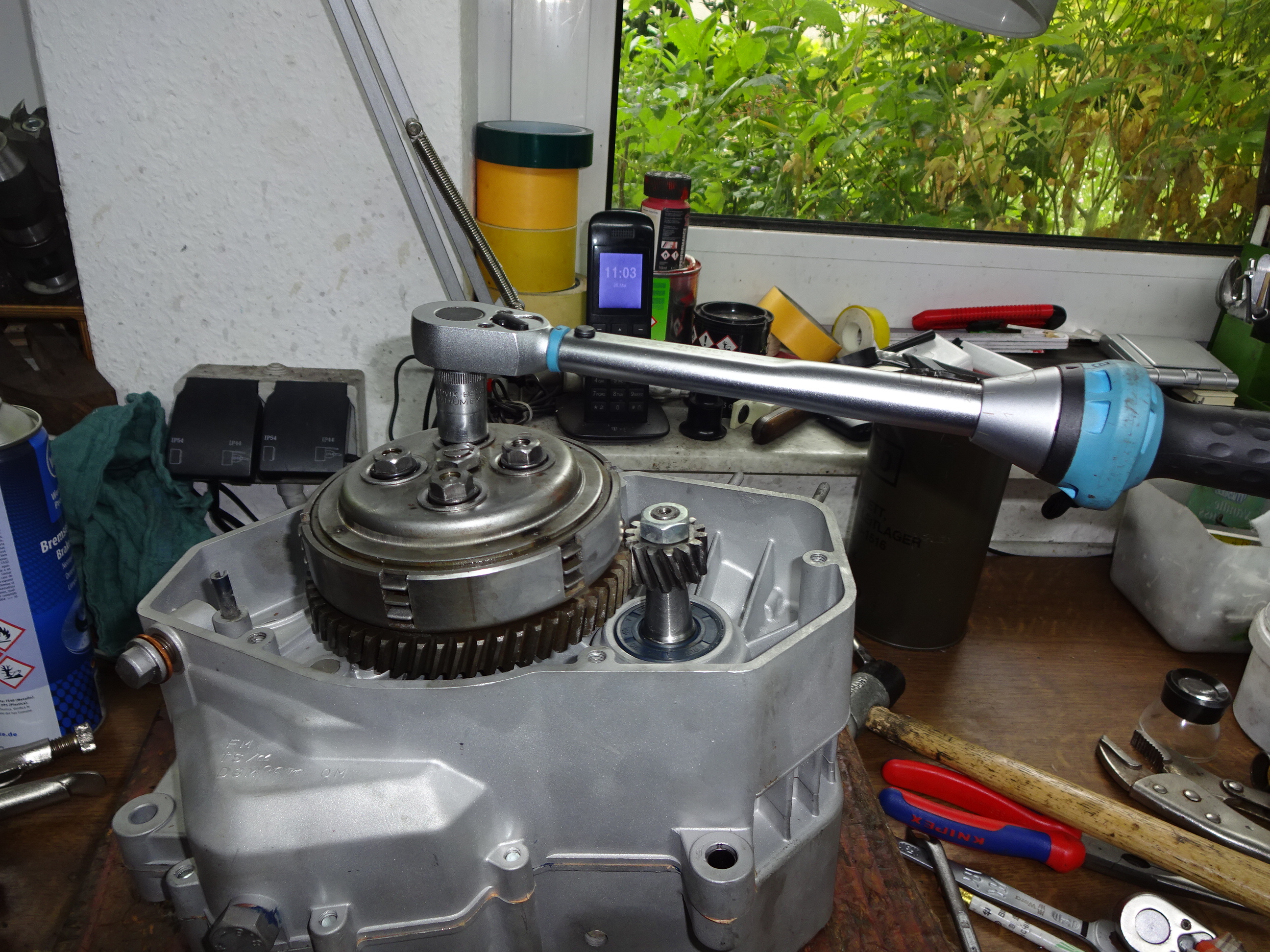 Weiter ging es mit der Kupplung und dem Spiel vom Korb. Das ging alles recht schnell, aber beim Festziehen der Kupplungsschrauben drehte eine durch.