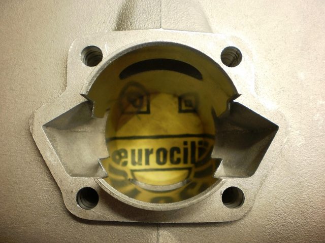 Der Zylinder ist..bingo...der gesuchte und teure "Eurocilindro 70cc", den gibt es in 2 Versionen..die ersten hatten 44mm Bohrung ( also 68ccm) , danach wurde das wohl aufgrund der dünnwandigen Laufbahn und etwaigen bei Überbelastung auftretenden Problemen auf 44mm ( ca. 63ccm) reduziert...Jugendliche kennen ja nur "Gas auf"