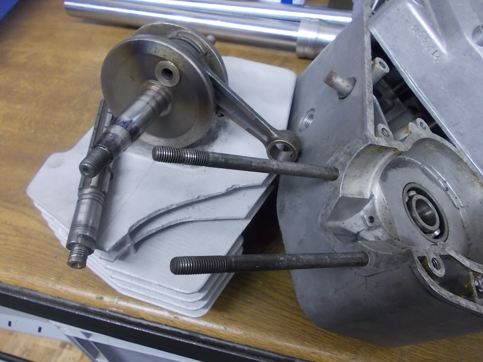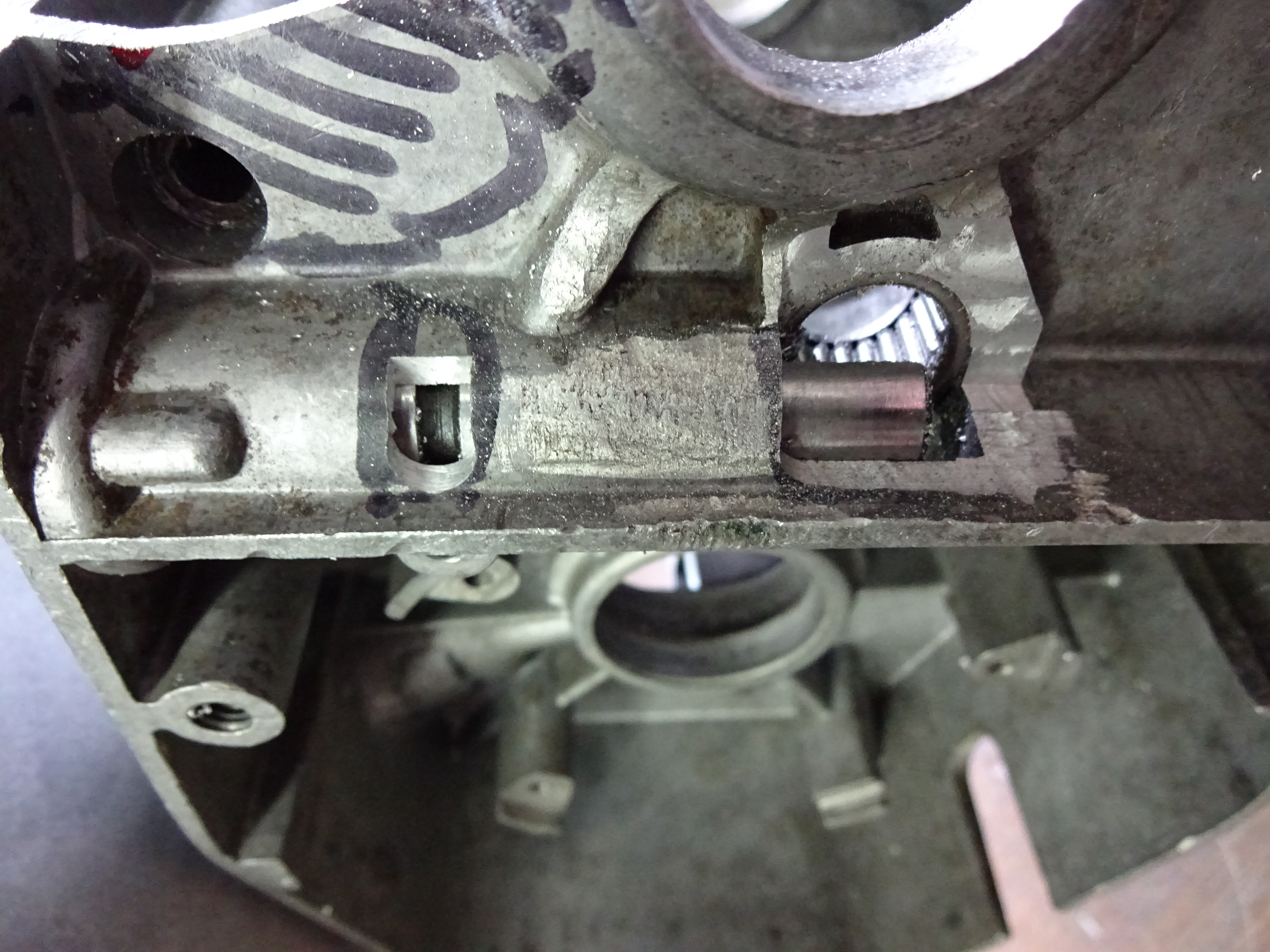 Tja was macht man mit so einem Schrottzylinder, Gehäuse mit heftigen kleinen Rissen im Überströmerbereich, ner total vernudelten Kurbelwelle und vermurkster Getriebewelle?
