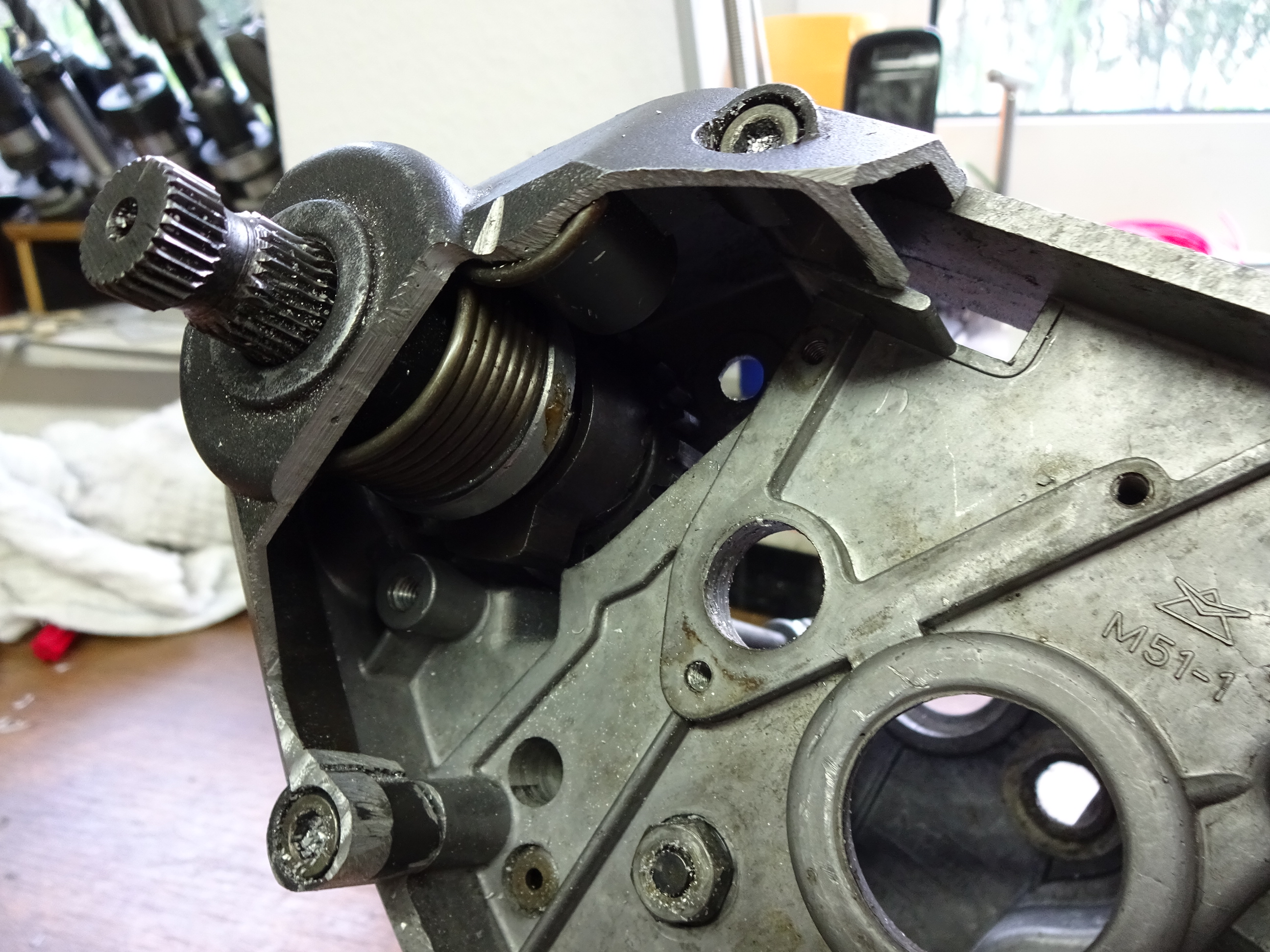 Nachdem mal ein wenig die Drahtbürste und Bremsenreiniger zu Einsatz kam, sah man warum der Kopf (nicht der Aris :mrgreen: ) so versifft ist.