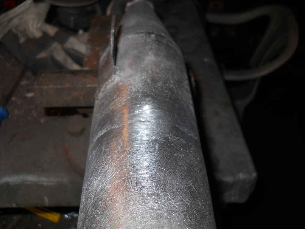 Da hab ich mir ein recht großes und passendes Teil genommen und auf der Drehbank erst mal den einen Kreisanschluss gedreht. Man kann sehen das gearbeitet wurde