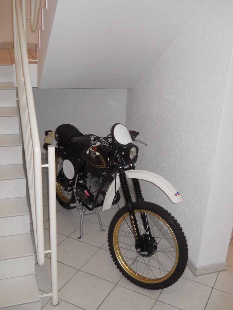 So schaut sie jetzt schon mal aus, im Garten der Eltern. Hab die jetzt mal in die alte Heimat "ausgelagert", da ich Platz fürs nächste Projekt brauche (Aprilia RC 80 Spezial)