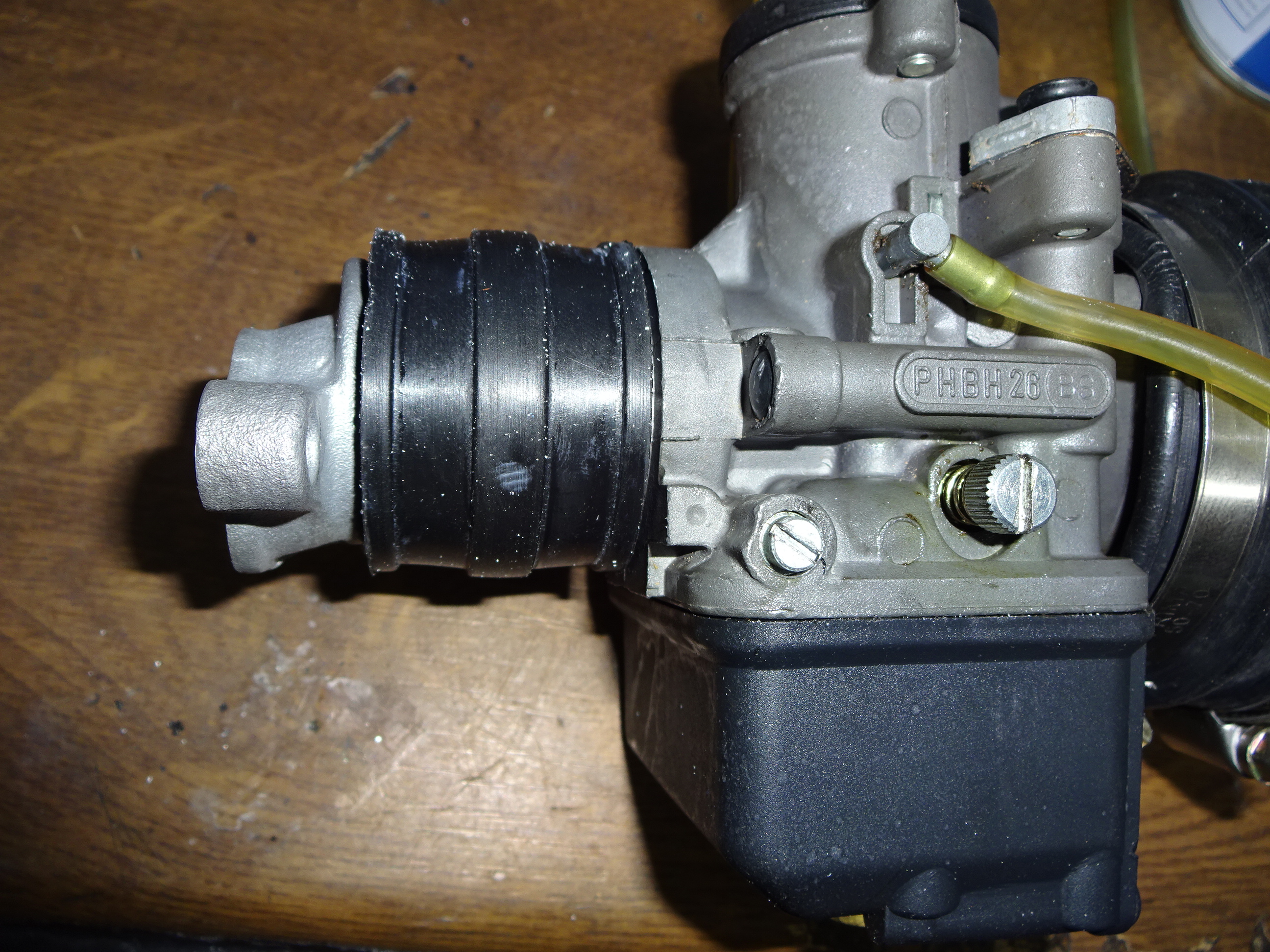 Erst kommt ja der 19er. Vergaser auf den Original-Polinistutzen, passt so ja prima. Aber für nen 26er muss das Teil auf 33mm gekürzt werden sagt Polini.