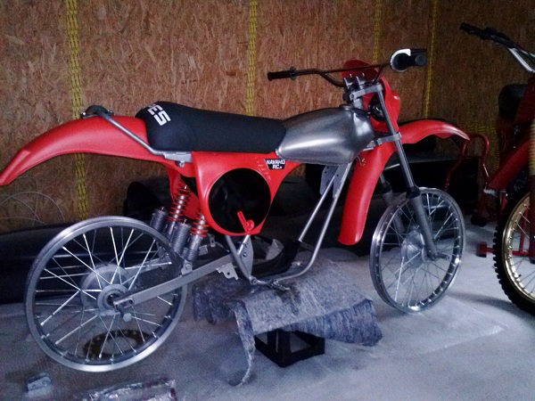 Nein, sie bekommt auch orangene Seitenteile, aber milchige Kotflügel. Also eher farbenfroh, es wäre mir sonst zuviel orange. Dafür ohne Lampenmaske. Ich habe schon einen Tachohalter, passende Lampenhalter muss ich noch finden. Eine alte Gabel ohne Strebe habe ich auch. Habe die alten Tauchrohre mit den Standrohren der neueren verhochzeitet, bleiben allerdings nur poliert, nicht orange. Halte mich aber mit den Teilen am Original, hat auch silbernen Zylinderkopf. Abweichen werde ich noch mit dem Lenker: kein Chrom, ich nehme den Schwarzen mit Alustrebe, der gefällt mir besser. Der Kettenschutz ist nicht original, nur die Maße. Habe einfach Bastelplastik aus dem Baumarkt besorgt, mit dem Teppichmesser zurecht geschnitten und mit dem Fön heiß gemacht und gebogen. Das Ding koste ein paar Cent. Mir fehlen noch der Tacho, Welle, Antrieb, der Kotflügelhalter. Ja, das ist der Aufkleber von Schneideteufel. Findest Du wirklich, dass der zu weit vorne sitzt? Was nimmst Du für Reifen?