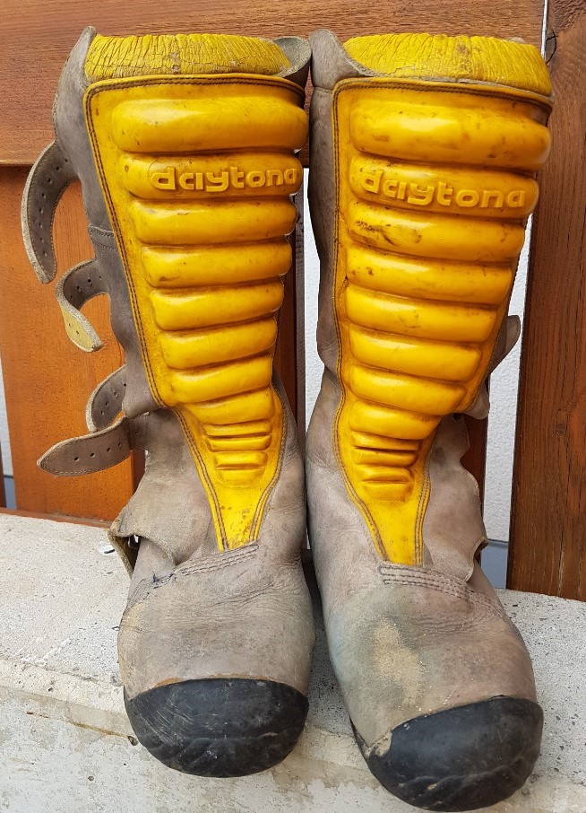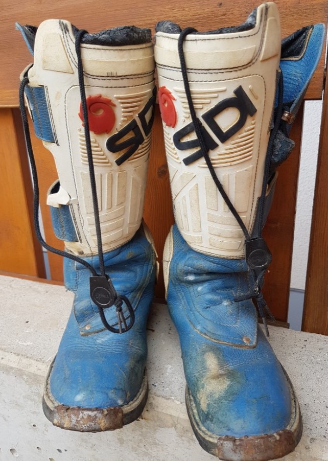 Crossstiefel sind leider ein Gebrauchsartikel mit beschränkter Lebensdauer. Nach 20 Jahren taugen die nur noch für die Vitrine. Und davor würde ich die je nach häufigem Einsatz auch nicht länger als ein paar Jahre fahren, schon aus Sicherheitsgründen. Das ist in meinen Augen eine Marktlücke: Crossstiefel in echter Vintage-Optik. Entweder man bekommt sie in langweiligem Schwarz oder sie sind optisch einfach nicht retro genug. |