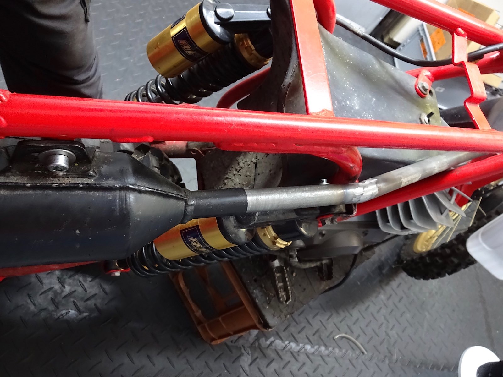 Ist im Moment mit Öhlins Federbeinen versehen (aus meiner 175er KTM geklaut :roll: ) und hat mittlerweile goldene Akrontfelgen.