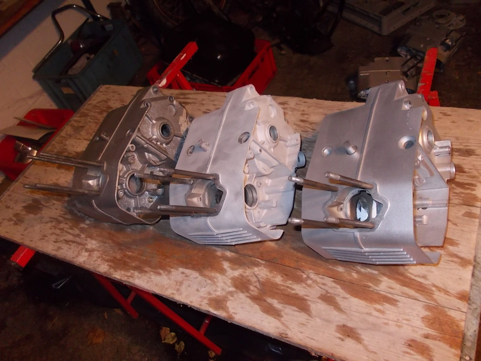 Motorengehäuse strahle ich mit 350-500mü Glasgranulat. Nur so bekome ich da den Dreck weg und eine gleichmäßige Oberfläche, welche aber sehr matt ist.