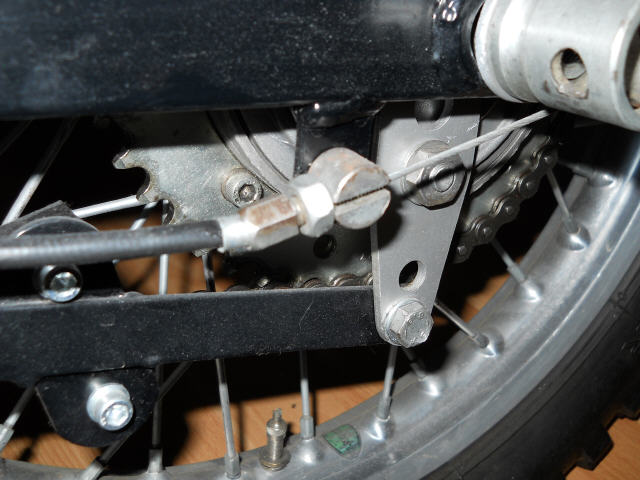 Hab hier an meiner "Spass Aspes" (50er für Rennen gedacht mit 80er Schwinge für Geradeauslauf, aber Rückdämpfer Hinterrad) zwecks dosiertem Bremsen eine Zugstange angebracht