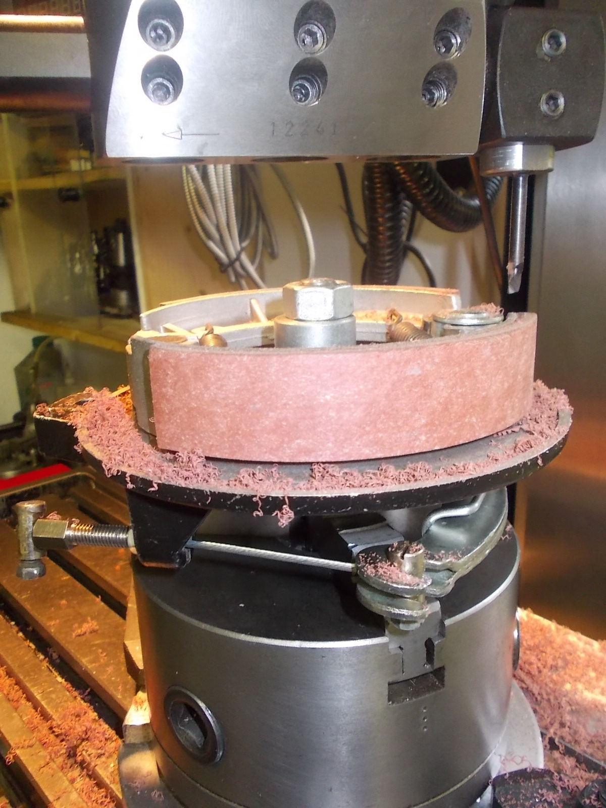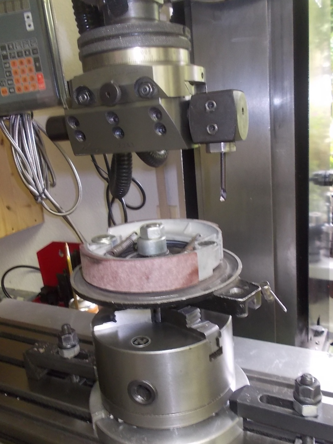 Ich muss einfach den Ausdrehkopf auf den Trommeldurchmesser stellen und über den Bremshebel zustellen. Um jetzt eine „Messlehre“ zu haben um den Ausdrehkopf einzustellen, hab ich einen dicken Aluklotz so passend gedreht, dass der gerade so in die Trommel passt. Kann man jetzt auch noch ohne Probleme auf andere Durchmesser anpassen.