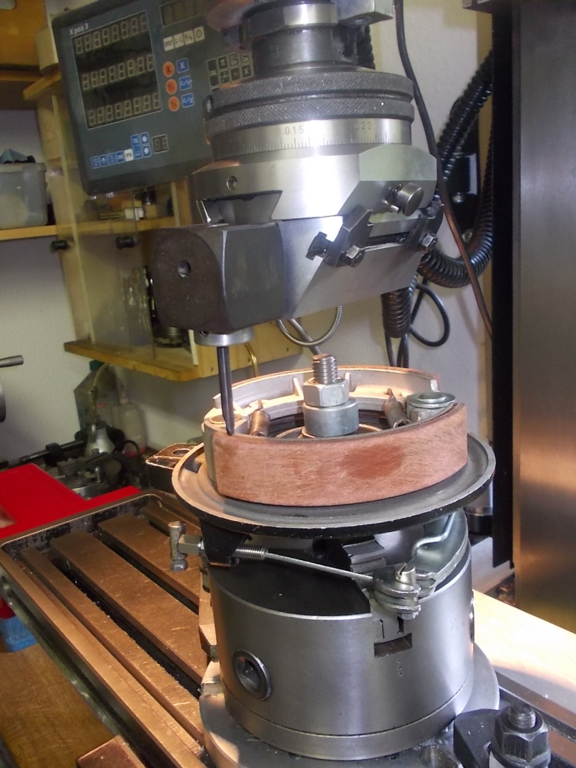 Jetzt den Klotz und Ausdrehkopf weg und das Drehfutter mittig ausgerichtet. Danach konnte der Ausdrehkopf wieder hin.