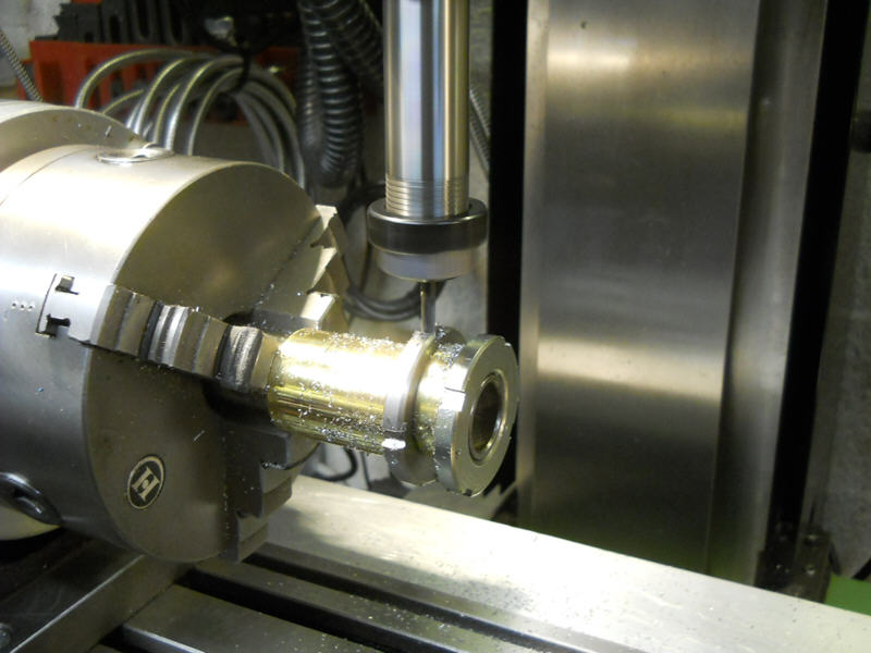 Jetzt noch Loch gebohrt und mit M25x1 Gewinde auf der Drehbank versehen