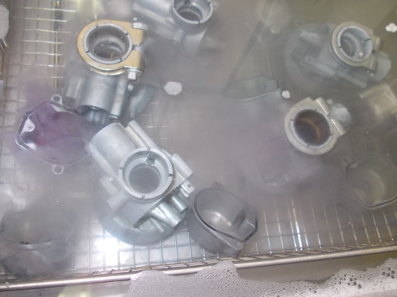 So heute mal wieder ein Kurzarbeitstag, d.h. lang in der Werkstatt Mal die noch nicht gereinigten SHB Vergaser in den Ultraschallreiniger gelegt Dateianhang: Sobald der Ultraschall arbeitet sieht man gleich die Wirkung. Dateianhang: Hab in der Zwischenzeit angefangen Stopfen vorne und hinten für die kleinen SHA Vergaser zu machen, Bilder folgen noch. Kalle |