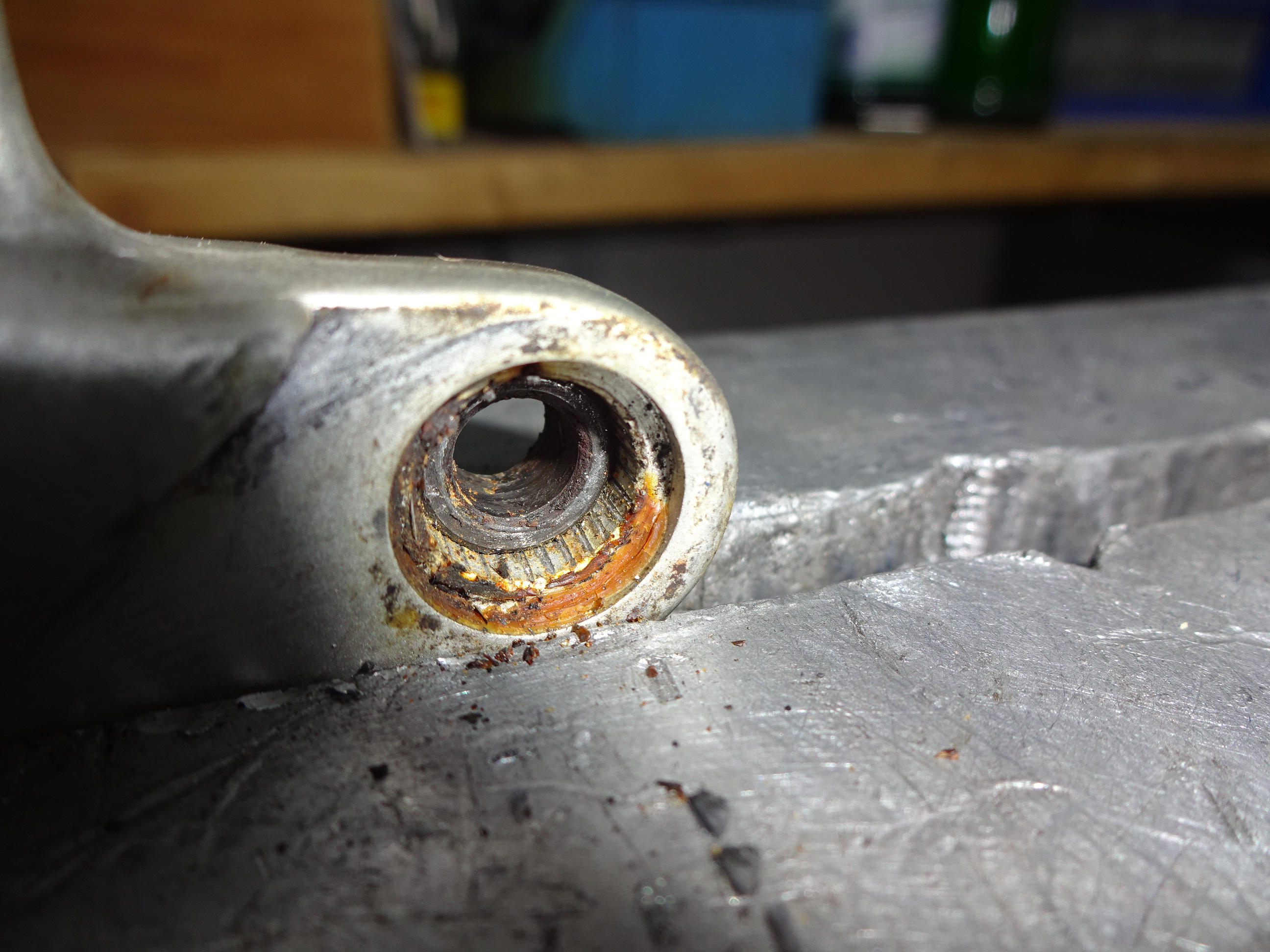 Als erst mal die ausgenudelte Buchse aus dem Hebel getrieben