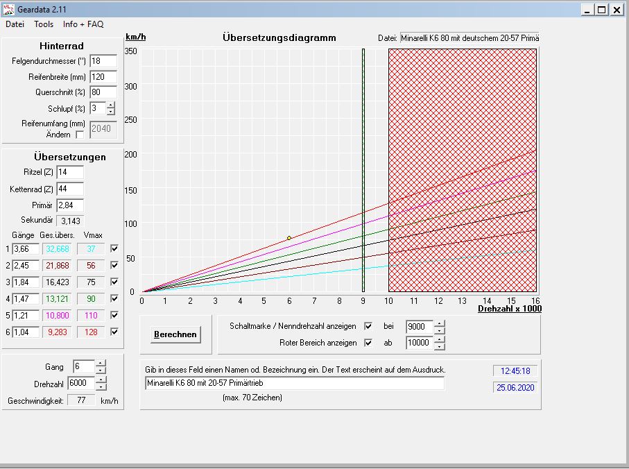Unterschiedlich sind hier lediglich die letzten beiden Gänge. Der Drehzahlsprung bei Regularita 1 von 4-5 und 5-6 ist natürlich um einiges größer. Aber damals mit 60/65kg nicht so schlimm gewesen