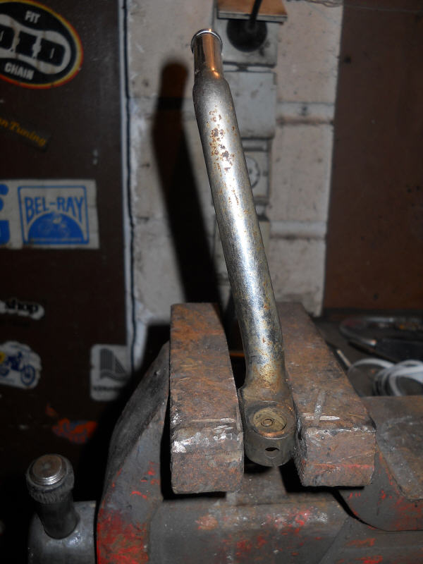 Auch musste das Kickstarteroberteil (also der Hebel selbst) auch noch umgeschweisst werden, damit der wieder in Fahrtrichtung nach vorne zeigt und auch eingeklappt zum Motor hin geneigt ist.