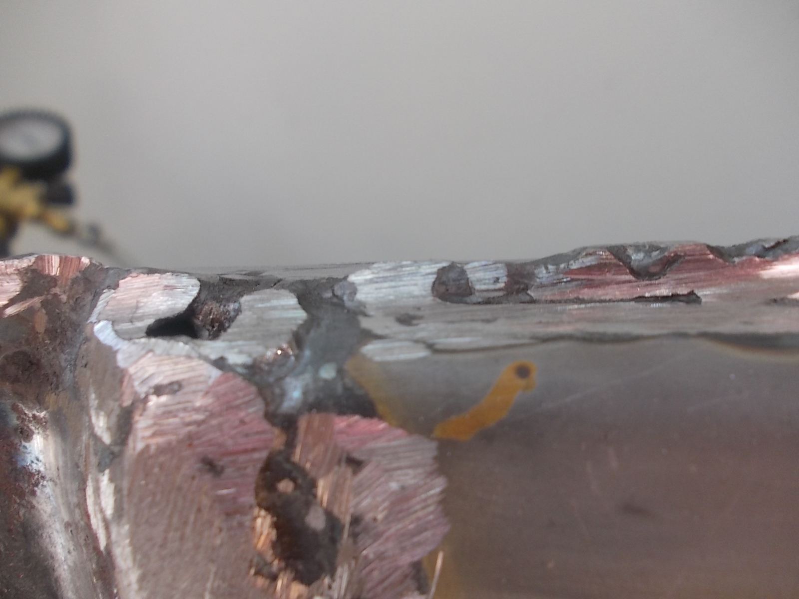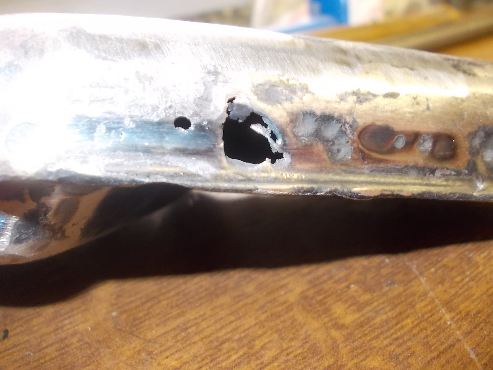 Wenn es ein Autoblech gewesen wäre hätte ich gesagt spachteln und schleifen