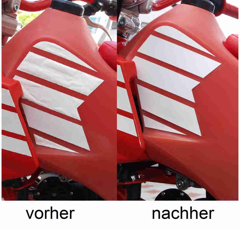 die Tankaufkleber auf dem Kunststofftank meiner HRD bekommen nach kurzer Zeit blasen und lösen sich ab