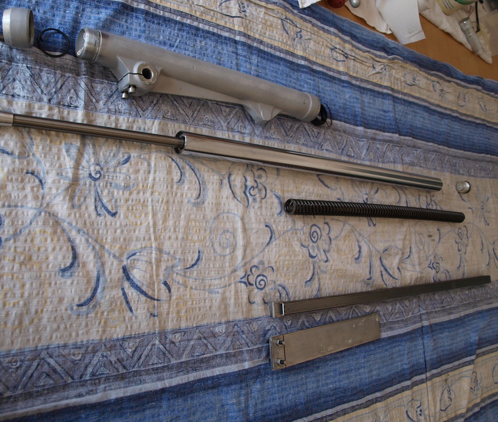Hallo Christian, herzlich willkommen! In der Anleitung (Hinweise für Gebrauch und Wartung) steht: Gabelfüllmenge pro Holm: 300cm3 Viskosität: SAE 10 Hydrauliköl Eine Zeichnung von der Gabel habe ich zwar nicht, aber dafür eine paar Bilder einer zerlegten Gabel. Zur Demontage / Montage habe ich mir wie auf dem Bild zu sehen ist 2 Werkzeuge angefertigt. Gruß Frank