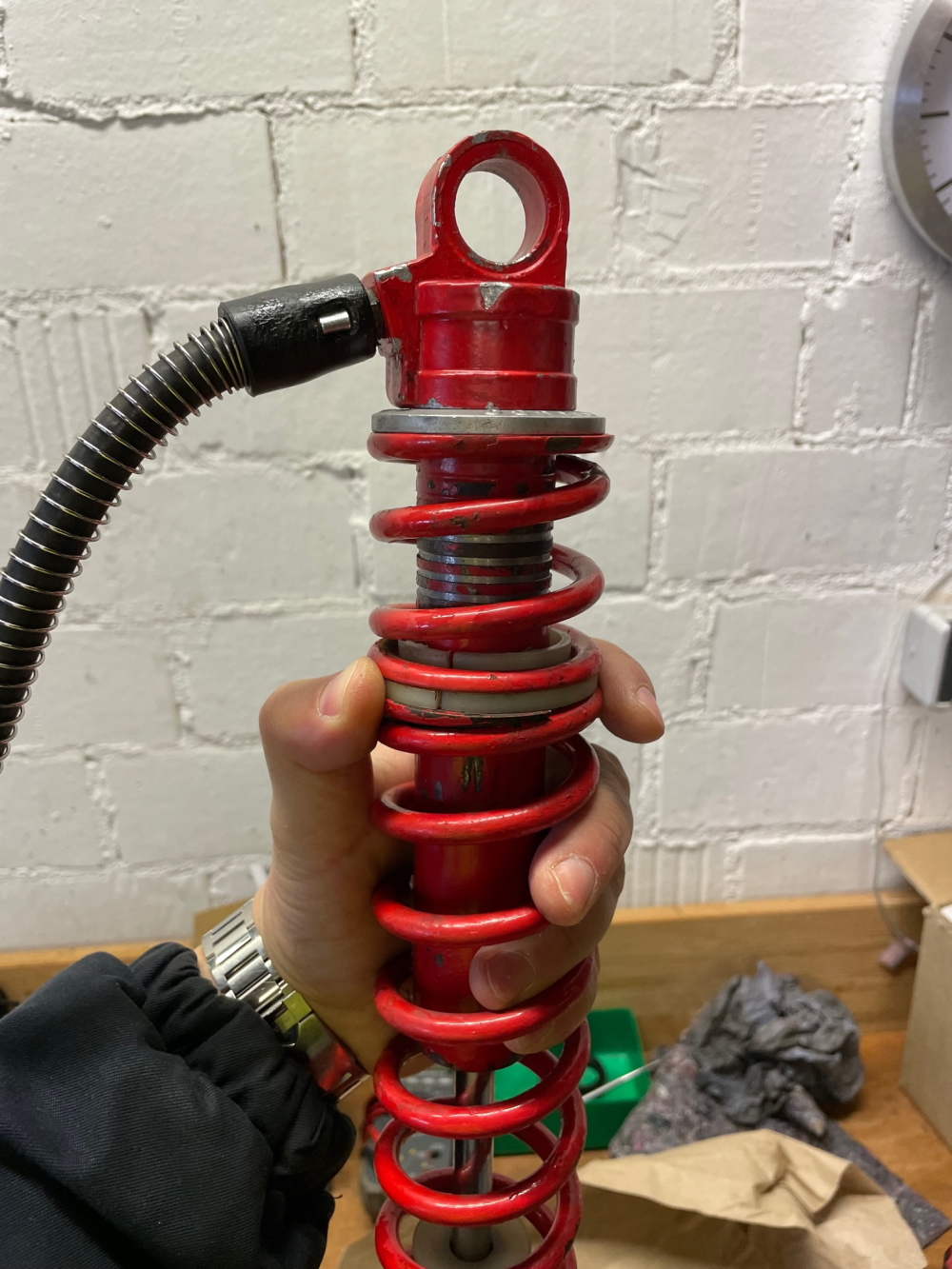 Die Buchsen für die Federbeinaugen hab ich. Hatte ich zum Service demontiert das da nix weg kommt. Die runden Sicherungs-Ringe sind drin. Schnappen aber unter Belastung aus den Nuten. Hab mal versucht das Ganze neu zu montieren. Schnippt immer wieder raus. Dateianhang: