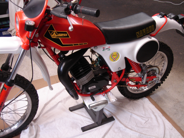 Motor: Original Minarelli p6-50 Aspes, also eingeschlagen, überholt, Gehäusehälften aufbereitet, alle Lager wie KW Lager, Getrieblager (auch Nadellager im Getriebe) neu, Markenlager FAG/SKF C3 (erhöhte Lagerluft), Simmerringe+Dichtungssatz neu, neu ausdistanzierte Kurbelwelle, Getriebe 6-Gang alle Gänge schaltbar neu ausdistanziert. Dansi kontaktlose Zündung. Tank Original Aspes wurde geschliffen (bis 3000er Papier) und poliert Kurze Sitzbank. Diese wurde neu bezogen und Navaho Logos mit Lederfarbe und Matrize Sprühpistole aufgebracht
