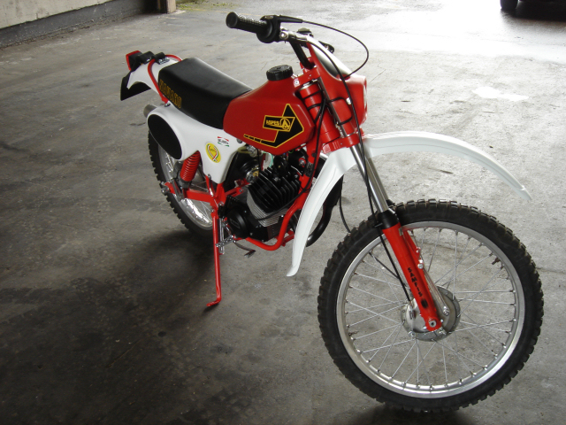 Neuaufbau: Aspes Navaho RCR 50 Fahrgestellnummer: 01XXX mit Original-Papieren BJ 1980 Rahmen, Kastenschwinge, Gabelbrücken, Seitenständer usw. gestrahlt und pulverbeschichtet in verkehrsot RAL 3020 seidenglanz.