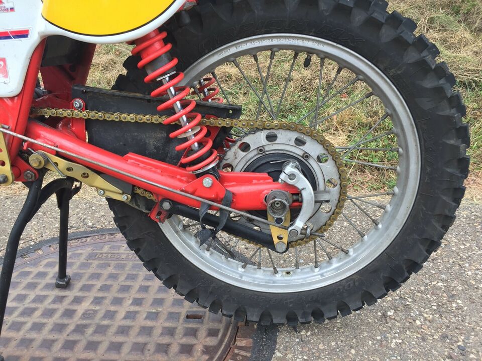 Die „Replika“ mit FM 400 Motor finde ich schon sehr interessant. Ich wusste bis zu dieser Anzeige nicht, dass es das gegeben hat. Leider schlecht umgesetzt. Der Motor hängt zu weit nach vorn gekippt drin und die Motorhalterung mutet gebastelt an. Da hat einer aus der Not eine Tugend machen wollen. RSX Rahmen und FM 400 Motor. Beides bekommt man noch eher, als eine echte Cross Competizione 125. Gabel und erst recht Sattel sind schon selten, den Rest bekommt man schon einfacher zusammen. Auch die Zulassung ist ein Argument. Trotzdem, da muss man sich nix einbilden, liegt der Preis unter der einer echten Caballero und daher aus meiner Sicht bei max 3.500 €. Die investierte Arbeitszeit kann man eh immer abschreiben.