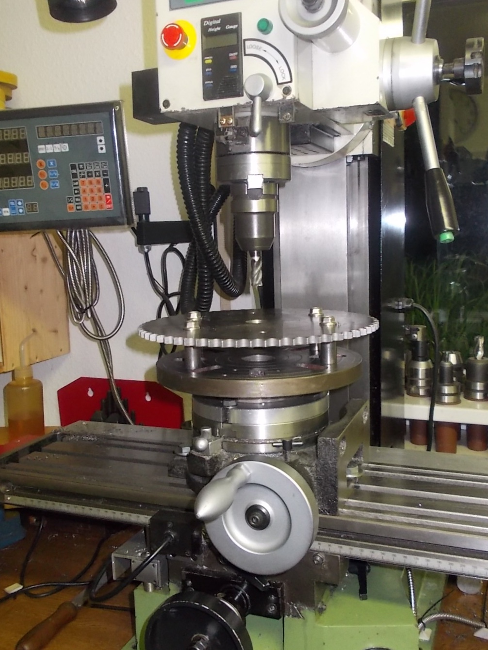 So relativ zeitaufwendiges Kurbel an Rundtisch war angesagt, er mal ein „Loch“ rein und dann sich dem Enddurchmesser nähern.