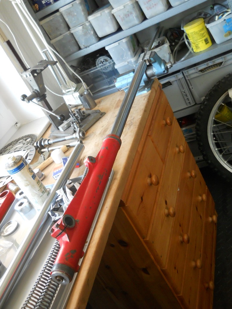 Jetzt liefen die neuen Mutter aber auch noch nicht sauber auf den Achsen. Also dort auch das Aussengewinde nachgeschnitten. Sah nach nichts Großem aus, aber jetzt passt alles wieder perfekt.