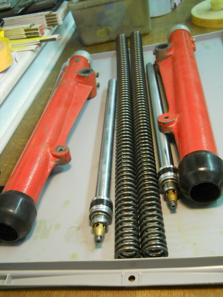 Musste dann aber schnell die Gabel ausbauen, denn die tropfte durch die Entlüftungsventile