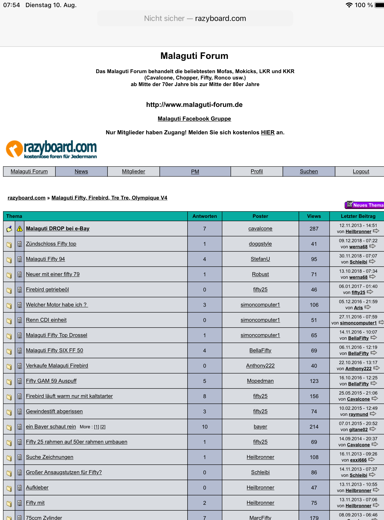 - Also ins Malaguti Forum über http://www.razyboard.com/system/index.php?id=holgi33 kommst du nur wenn du registriert bist. Hab gerade reingeschaut, komme einwandfrei rein.