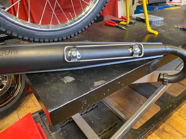 Aber der Spaß kommt eben auch vom Selbermachen, also habe ich den Hitzeschutzgbügel am Aufpuff und den Bügel, der das Rahmenheck verlängert und den Kotflügel stabilisiert selber machen wollen. Dass der laut Zeichnung in der Teilliste von Italjet eher kantig ist, kam mir da entgegen.